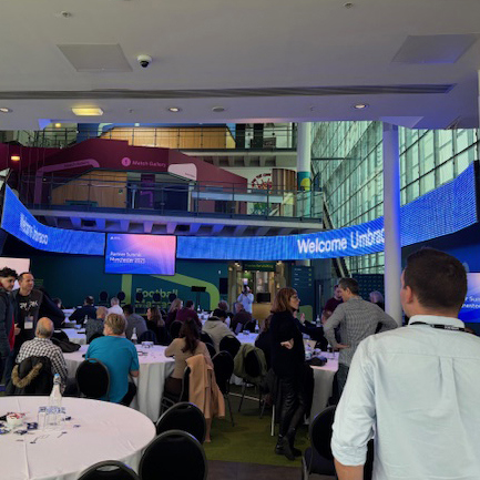 Even more conveniently, the venue was The National Football Museum which is but a corner kick away from Victoria train station, and those lovely chaps from Umbraco had a arranged a free pre-event mooch around the museum for delegates, which is worth going back to for a longer look. Another corner kick away from the Museum is the The Corn Exchange, home to the Cozy Club where there was pre-drinks, an excellent lunch and a chance to catch up with friends before heading back to the venue which had been fully ‘umbracified’ and made for an impressive backdrop.
